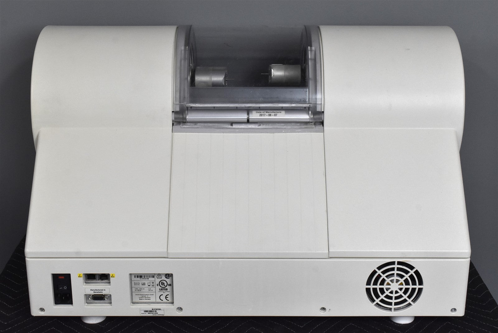 Sirona Cerec MC XL milling unit Was inspected for damage and defects, . Powered on unit for functional test. Ran STEPPER test: MOVING test Calibration tested .Mouse and keyboard connected,all lights and buttons were fully functional.120volt. Inspection Result: - Ready for Resale.