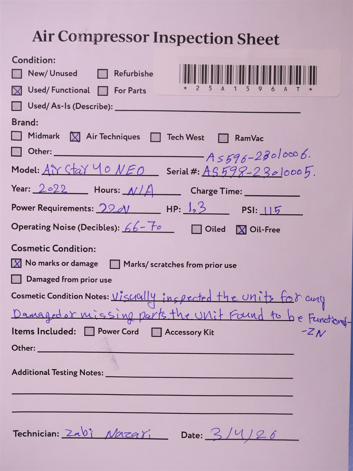 - Serial Number: AS598-23010005/AS59623010006