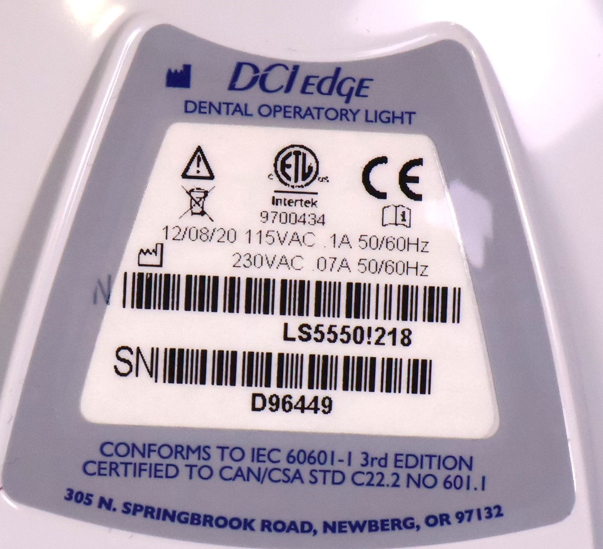 Visually inspected this DCI System Mount Series 5 LED Exam Light for any damage or missing components that would interfere with units complete desired function. Unit is complete and damage free. Unit has a wiring harness. FINAL PRODUCT INSPECTION STATUS= PASSED.