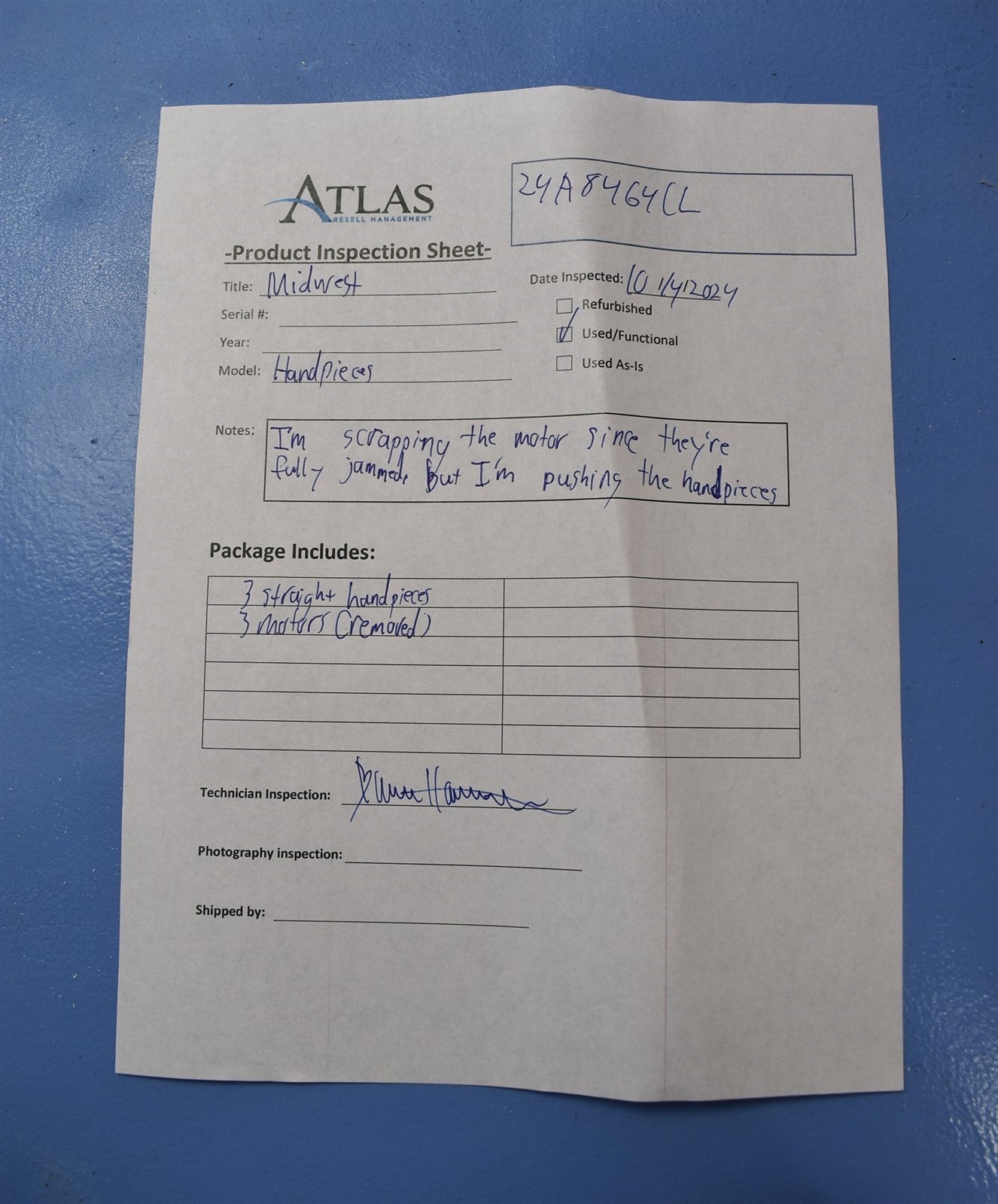 I function tested each combination. All the motors were non-functional, since they didn't even allow air through. I scrapped the motors and now I'm putting the handpieces through since they're in good condition.