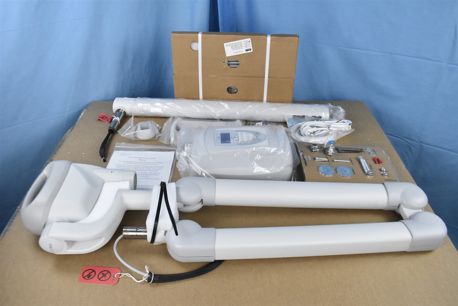 Progeny Preva X-ray, Control Display, X-ray Optics, Horizontal Arm, Scissor Arm, and Control Box.