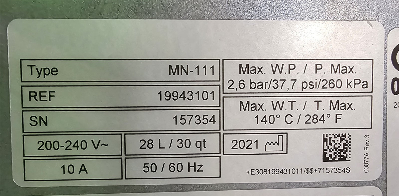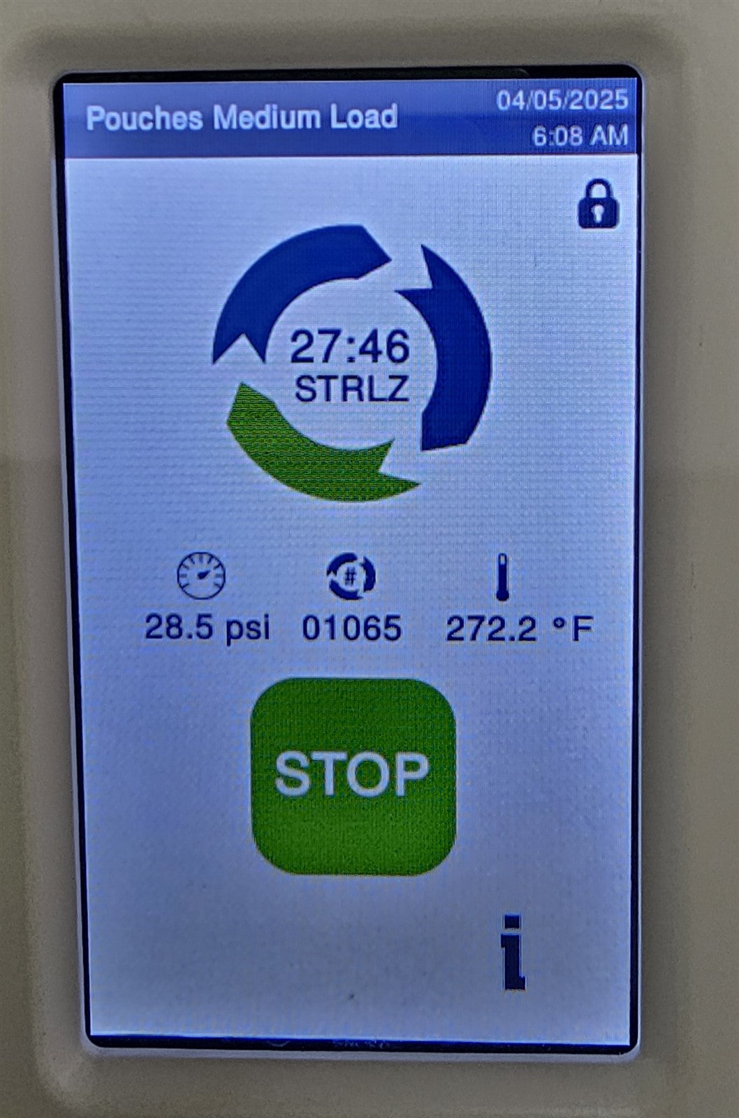 Inspected Autoclave inside and out. This sterilizer is lightly used 2021 model autoclave, with only 1,100 cycles run on it. Sterilizing chamber and trays have some staining and decolorization from prior usage. THIS AUTOCLAVE REQUIRES A 220 VOLT A/C POWER SOURCE TO MAKE IT RUN CORRECTLY. PLEASE BE AWARE OF THIS REQUIREMENT BEFORE PURCHASING. To test this autoclave, it was connected to a 220 VOLT power source, distilled water was added and then it was run through some preset sterilizing and drying cycle. to verify that this autoclave is achieving it's maximum required sterilizing temperature, it was temperature tested using a Max Register Thermometer, and found to reach 273 F during a sterilizing cycle.