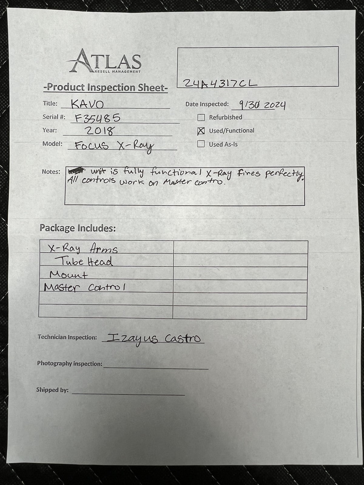 Unit is fully functional X-Ray fires perfect. All controls work on master control box.