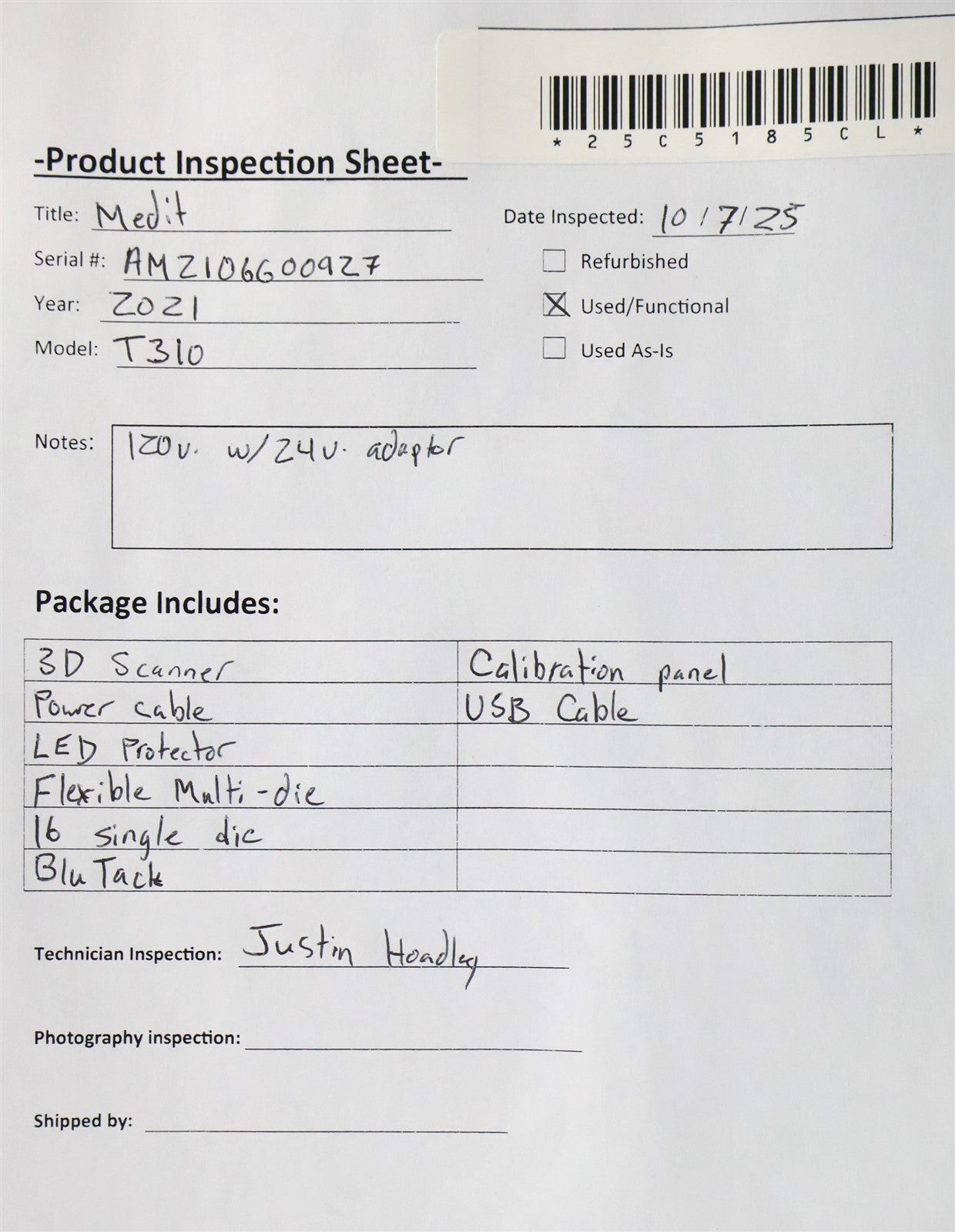 - Scanner Model: T310
