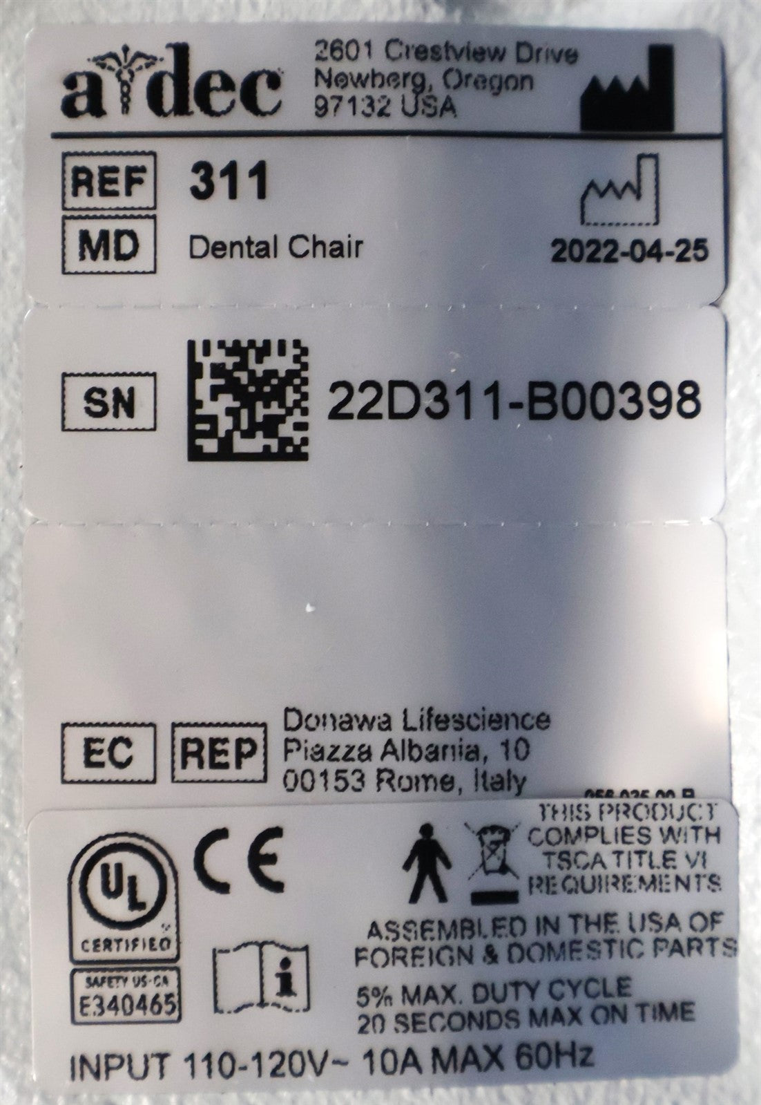 - Serial Number: 22D311-B00398